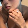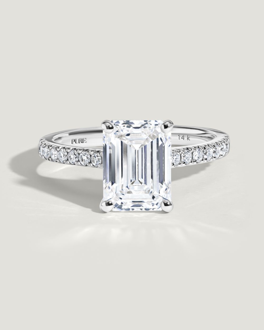 טבעת סוליטר אמרלד עם שיבוץ יהלומים על מחצית מהטבעת, עיצוב אלגנטי בעל קווים חדים וברורים. ההשראה מאדריאנה לימה, דוגמנית על ששינתה את כללי המשחק בזכות מבט חודר, יופי אייקוני ונשיות עוצמתית. כך גם הטבעת, נוכחות ברורה שמרגישים מיד