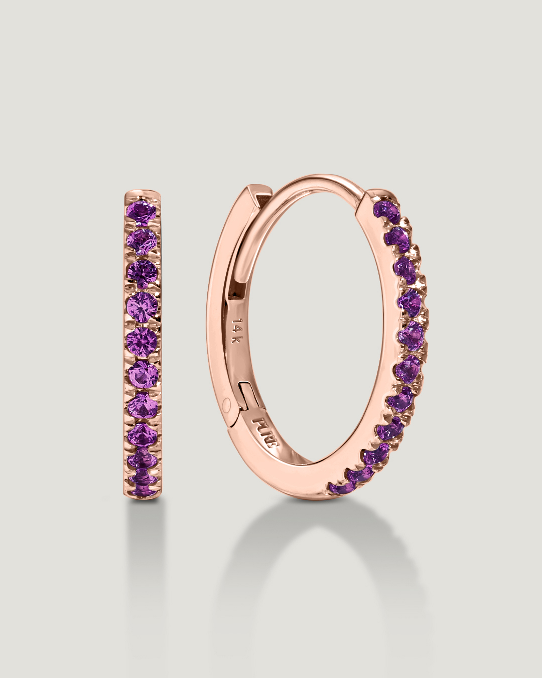 עגיל חישוק בינוני משובץ אבני אמתיסט סגולות, יוצר זוהר עמוק ונקי עם נגיעה מסתורית ורכה. בהשראת אלישיה קיז, אישיות מלאת נשמה, אמת ושקט פנימי שמקרין עוצמה טבעית. תכשיט שמבטא חוזק רגשי, נוכחות רגועה ואותנטיות שלא צריכה להרים את הקול כדי להשאיר חותם