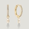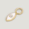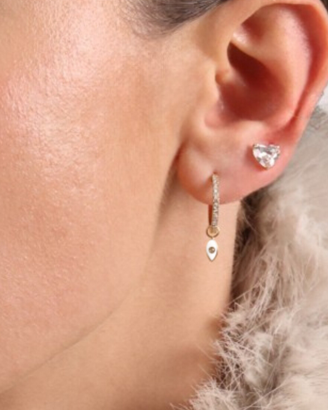 עגיל חישוק קטן משובץ יהלומים, עם עין אמייל בצבע שמנת ויהלום זוהר במרכז. ההשראה מדונה קארן, האישה ששינתה את הדרך בה נשים מתלבשות לעבודה ולערב, תוך שילוב של נוחות עם יוקרה. העגיל הזה נושא את אותה הרוח, קליל, אלגנטי ותמיד נכון
