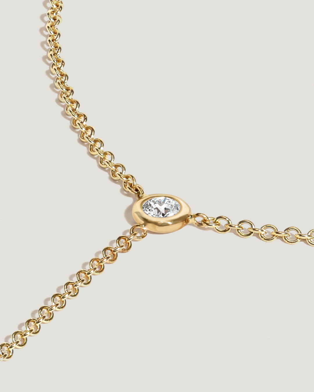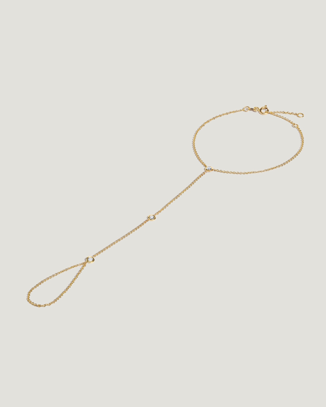 צמיד טבעת עם שיבוץ שלושה יהלומים עגולים לכל אורך היד,  עיצוב שמשדר זרימה טבעית ואלגנטיות. ההשראה מגבריאלה הרסט, מעצבת שהפכה את עולם האופנה לבמה של קיימות ויוקרה מודעת. כמו החזון של גבריאלה, גם הצמיד הזה לוקח קלאסיקה ונותן לה משמעות חדשה שמתאימה לימינו, נקייה יותר, מדוייקת יותר