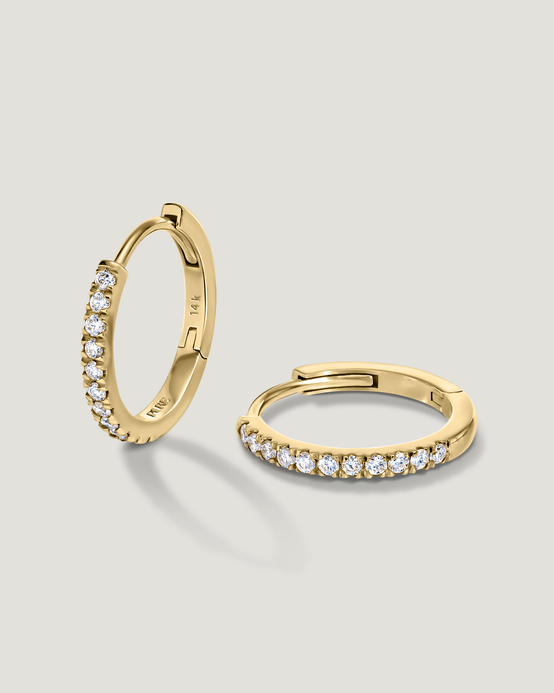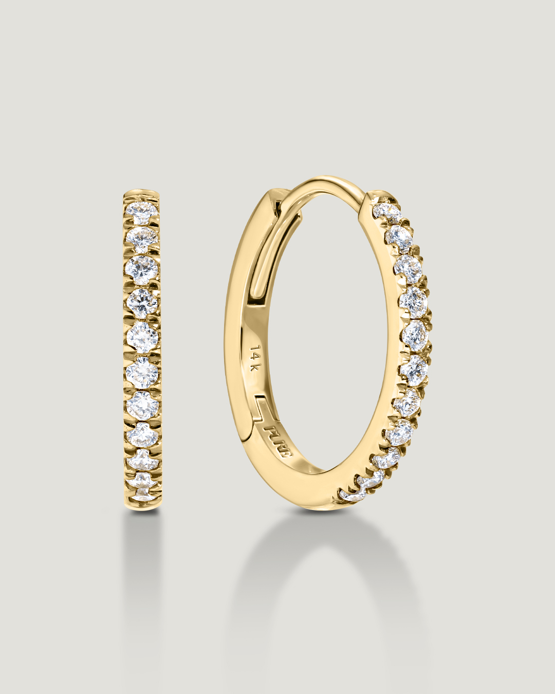 עגיל חישוק בקוטר בינוני משובץ יהלומים, תכשיט שמדגיש יופי קלאסי עם קריצה מודרנית. ג’ורג’יה אוקיף, שעמדה בחזית האמנות האמריקאית והעזה לפרוץ גבולות, היא ההשראה, ובדיוק כמוה גם העגיל הזה מגלם חופש, יצירתיות ונשיות נועזת