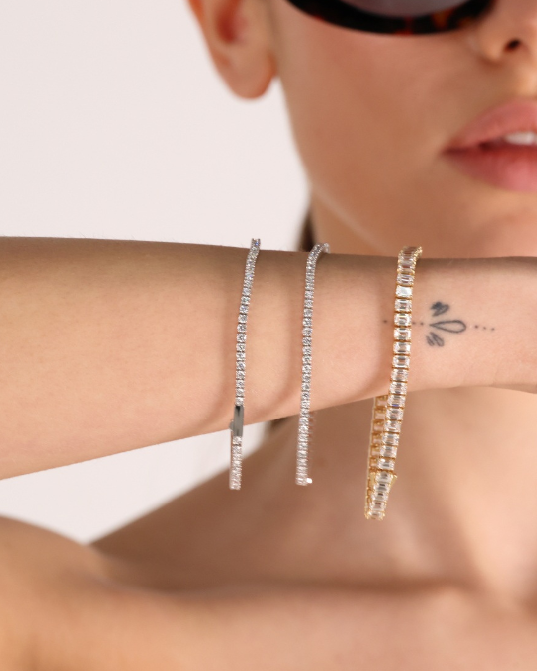 צמיד טניס חד ונקי עם יהלומים בחיתוך אמרלד, עיצוב שמחבר בין נצחיות לטרנד עכשווי. היילי ביבר, שנחשבת לקובעת טרנדים עולמית, היא ההשראה וכמו היילי, גם הצמיד הזה מביא איזון מושלם בין חדשנות וסטייל של ימינו לאלגנטיות על-זמנית