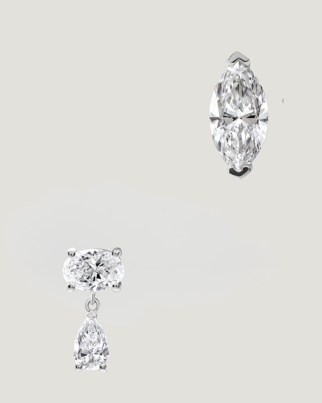 יש שילובים שמרגישים כאילו הם תמיד היו שם, ועדיין מצליחים להפתיע. השילוב הזה מפגיש בין החדות של המרקיזה לבין הרכות הנזילה של הטיפה התלויה. זה סט שנועד לייצר מוקד עניין על האוזן בלי להעמיס יוקרה קלאסית עם "קיק" של אטיטיוד צעיר