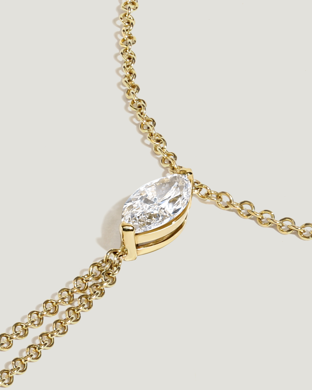 צמיד טבעת עם יהלום מרקיזה במרכז, תכשיט שמושך את המבט מיד. ההשראה מג’ודי שיקגו, אמנית פורצת דרך שהעלתה את קולה של האישה ללב האמנות העולמית. כך גם הצמיד הזה, לא רק קישוט, אלא אמירה ברורה על נוכחות ועוצמה נשית