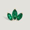 עגילי לוטוס בשיבוץ שלוש אבני זמביאן אמרלד ירוקות . העיצוב שואב השראה מלואי פולר, חלוצת המחול המודרני . בדיוק כפי שלואי יצרה על הבמה אשליות של פרחים ענקיים באמצעות בדי משי מתנפנפים ותאורה חדשנית, כך אבני המרקיזה הירוקות יוצרות תחושה של תנועה ופריחה