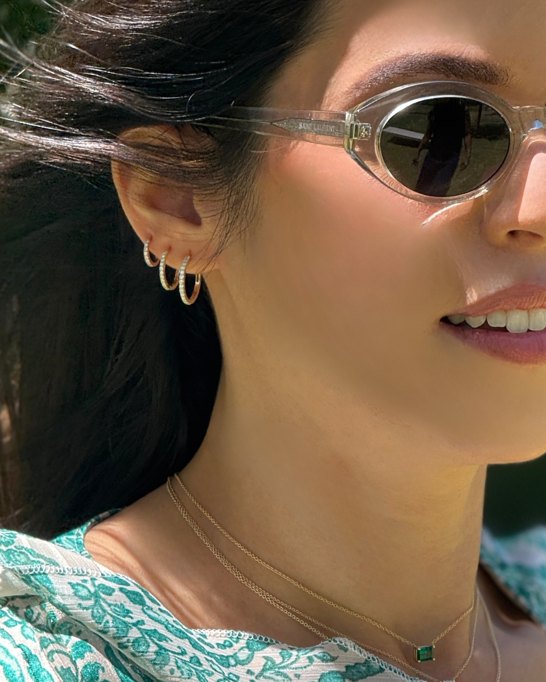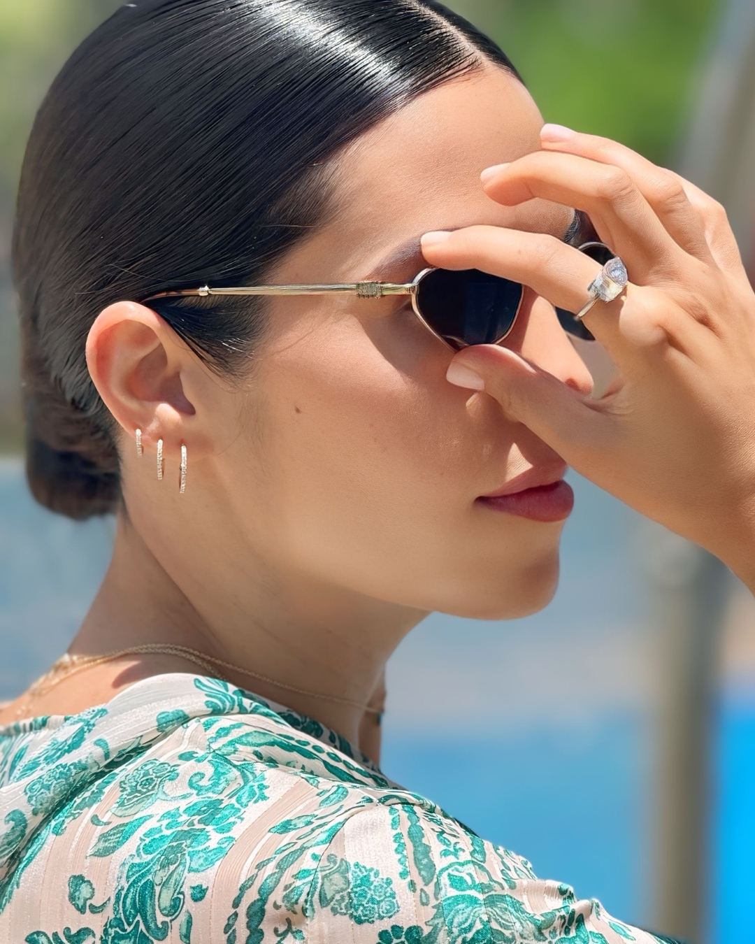 עגיל חישוק גדול משובץ יהלומים, תכשיט שנועד לעמוד במרכז. ההשראה ממריה גרציה קיורי, אישה ששינתה את השפה של אופנת העילית כשהדגישה שגם תכשיט יכול לשאת אמירה. כמו בעיצוביה במותג העל דיור, העגיל מדבר בעד עצמו וגורם לך להרגיש הכוכבת של הערב