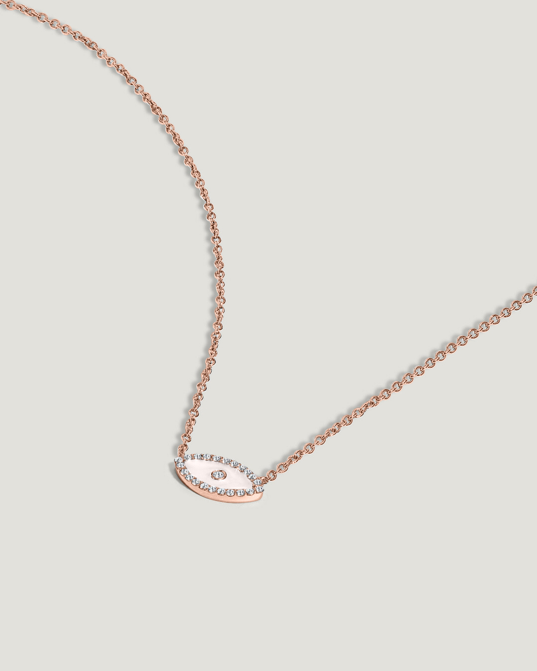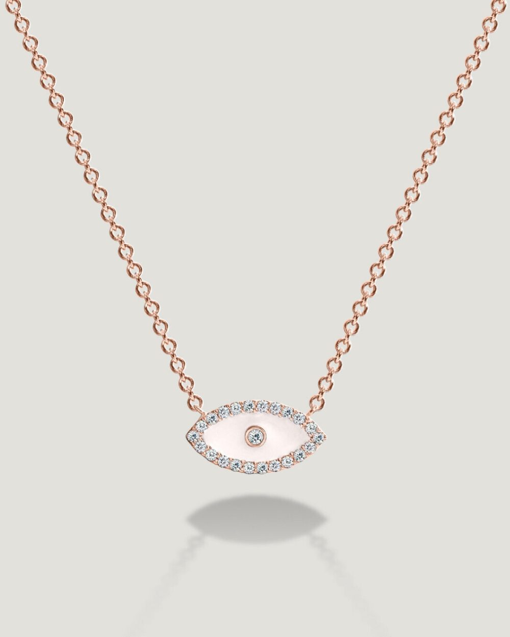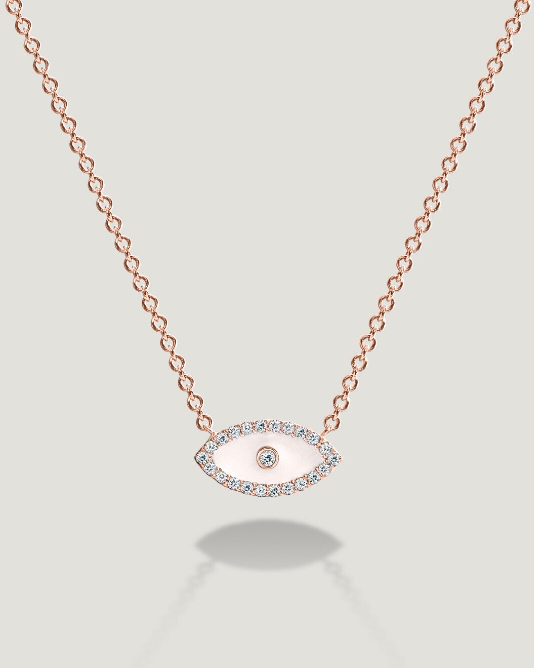 שרשרת צוקר עם עין אמייל בגוון לבן שמנת מוקפת יהלומים זוהרים, ההשראה ממאיה אנג’לו, משוררת וסופרת שהמילים שלה נתנו קול לדורות. כמו יצירותיה, גם השרשרת הזו פשוטה במראה אך עמוקה במשמעות, מביאה עמה מסר של עוצמה וניראות על זמנית