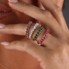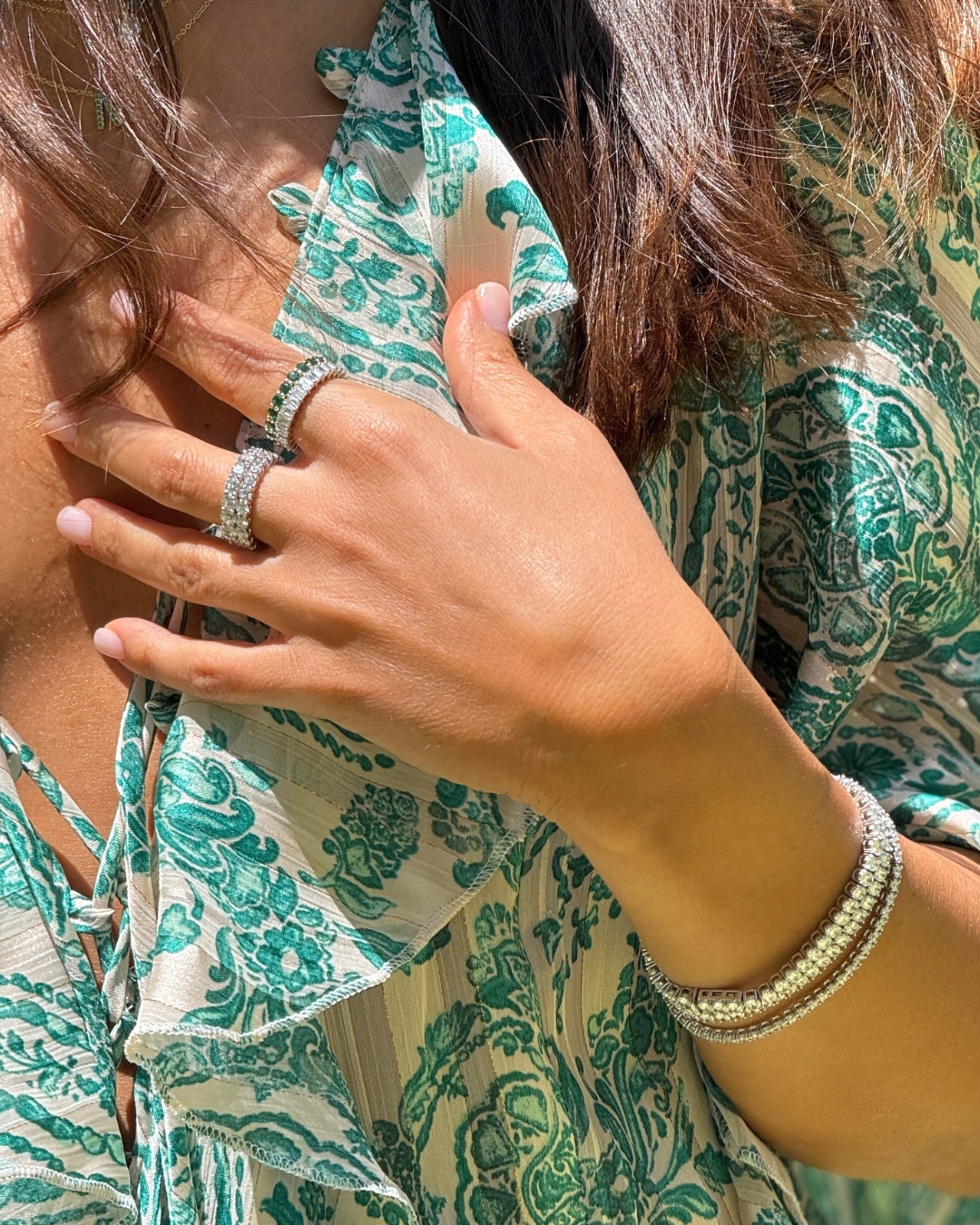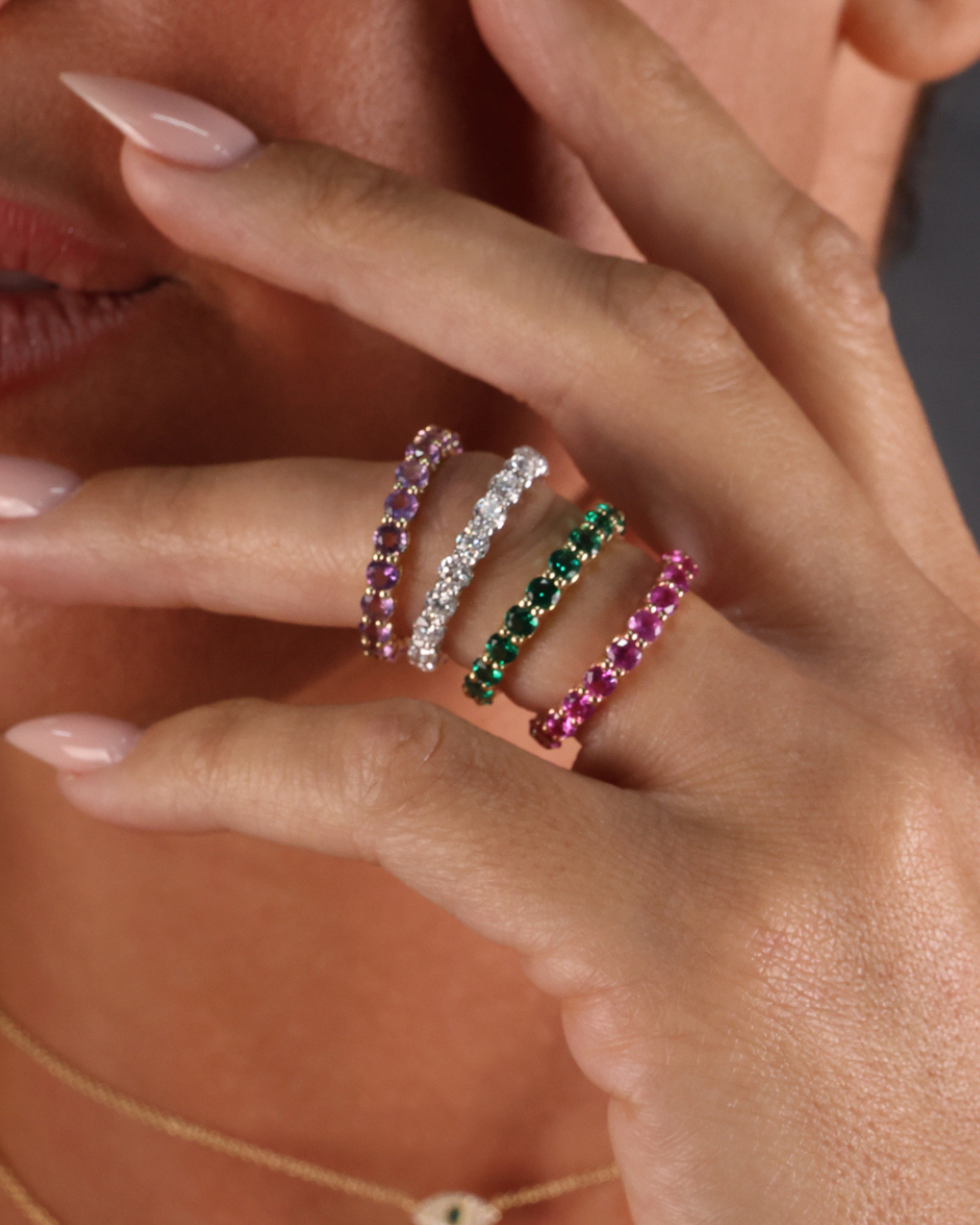 שורת יהלומים עגולים המקיפה את כל האצבע, טבעת שנועדה לשדר נצחיות ויוקרה. ההשראה ממרים אדלסון, אישה שבנתה אימפריה והשפעתה ממשיכה להדהד ברחבי העולם. כמוה, גם הטבעת הזו מגלמת אלגנטיות עם נוכחות שלא נגמרת