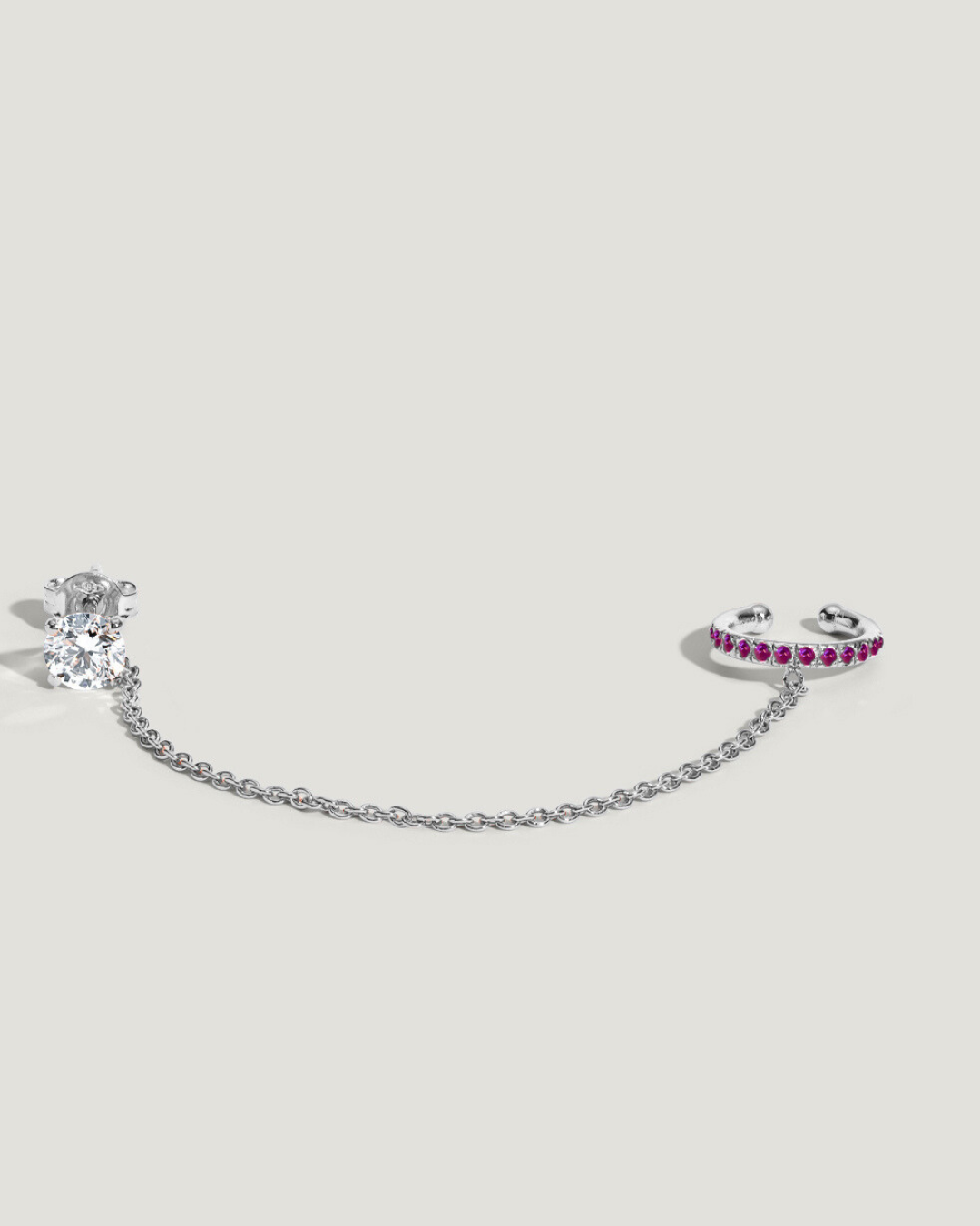 עגיל סטאד עגול עם חיבור עדין להליקס מנצנץ משובץ אבני ספיר ורודות, תכשיט שמרגיש כמו הצהרה אישית. ההשראה מניב סולטן, שחקנית שמביאה למסך תפקידים עוצמתיים, מלאי חיים, עם עדינות ונוכחות אמיצה, בדיוק כמו העגיל, צעיר, רענן ולא מתאמץ