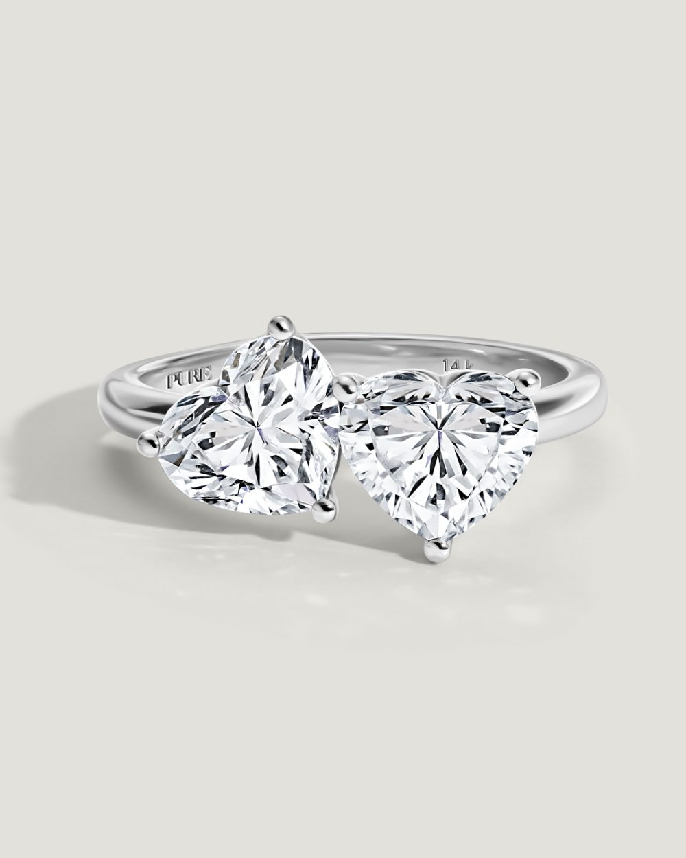 שני יהלומים בחיתוך לב משובצים בטבעת אלגנטית, עיצוב שמרגיש אישי ואינטימי. ההשראה מנעה תשבי, אישה שמשלבת קריירת משחק מצליחה עם השפעה חברתית. כמוה, גם הטבעת הזו היא לא רק יפה, אלא נושאת מסר ברור על כוח נשי מודרני