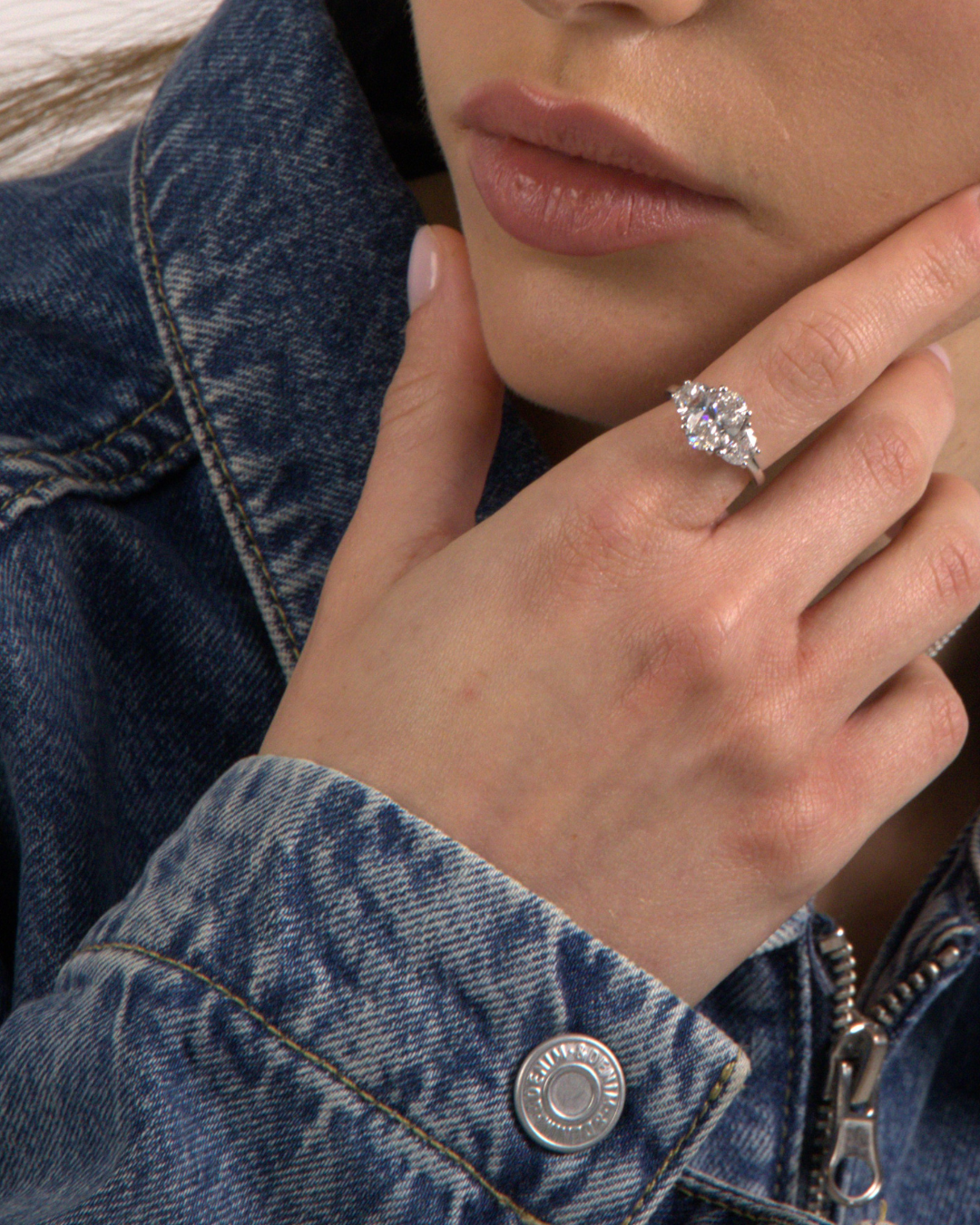 יהלום אובלי גדול ושני יהלומים בצורת חצי ירח מבריקים משני הצדדים, יוצרים טבעת מלאת עוצמה. ההשראה מרנה רסלאן, דוגמנית מעוררת השראה שהוכיחה שיופי יכול גם להיות גשר בין תרבויות. כמו רנה, גם הטבעת הזו מקרינה יוקרה, עוצמה וקסם מלכותי