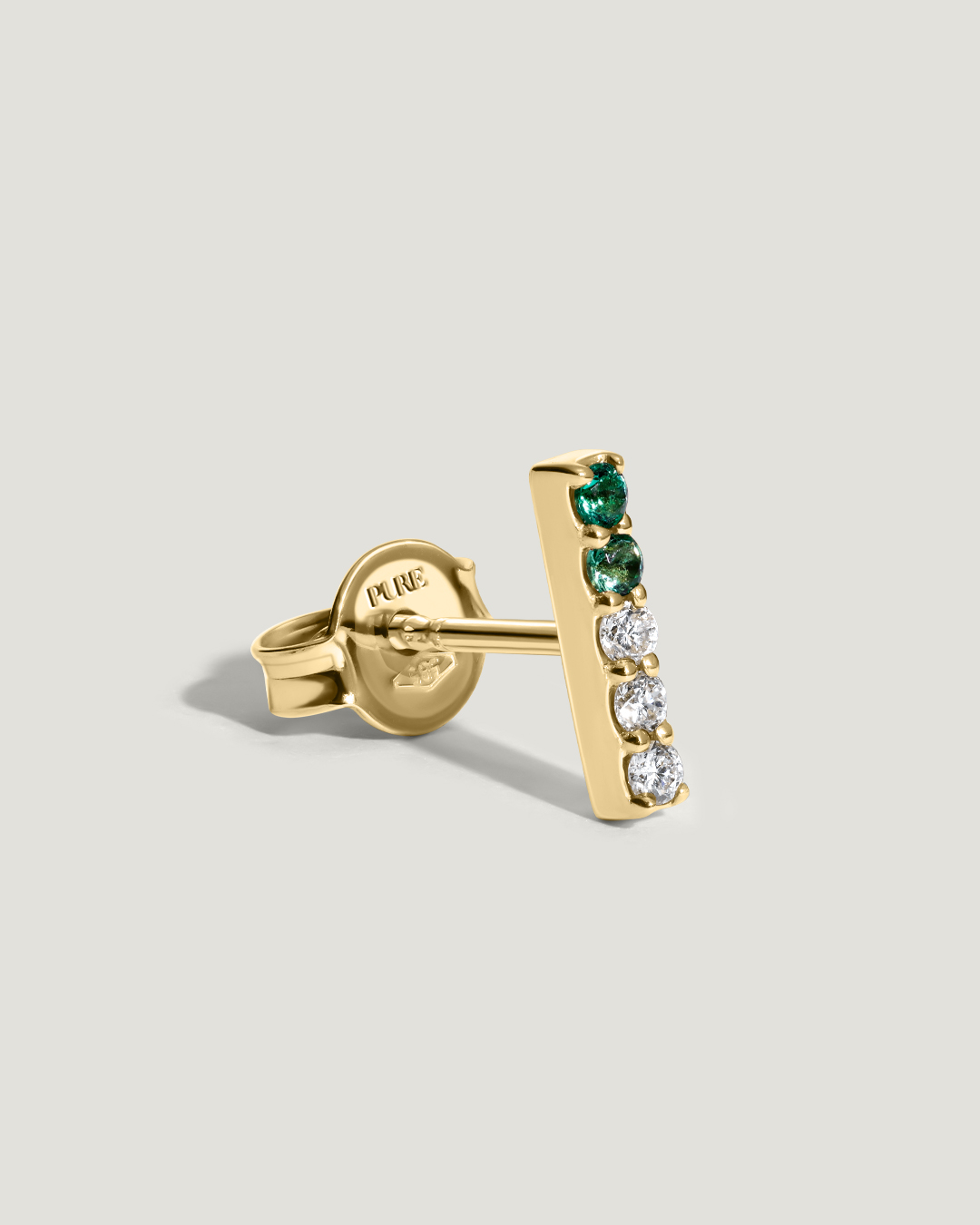 עגיל מקל משובץ יהלומי מעבדה ואבני זמביאן ירוקות, תכשיט שמשדר בהירות ונוכחות אלגנטית. ההשראה מרוזלינד פרנקלין, דמות מפתח בהיסטוריה של המדע שהוכיחה שידע, סבלנות ודיוק יכולים לשנות את העולם. העגיל הזה נושא עמו את אותה רוח פורצת דרך