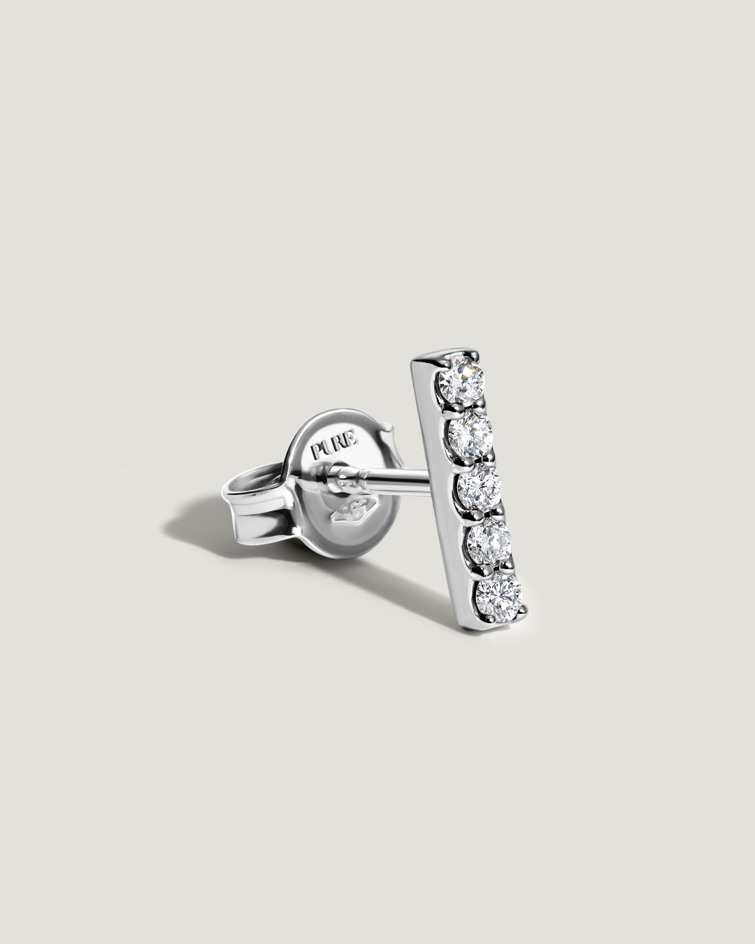 עגיל מקל משובץ יהלומים, עיצוב מודרני וחד. ההשראה מסאלי רייד, האישה הראשונה מארה"ב שהגיעה לחלל ומסמלת אומץ וחזון. כמו סאלי בדיוק, גם העגיל הזה שובר גבולות ומאיר בדרך אחרת