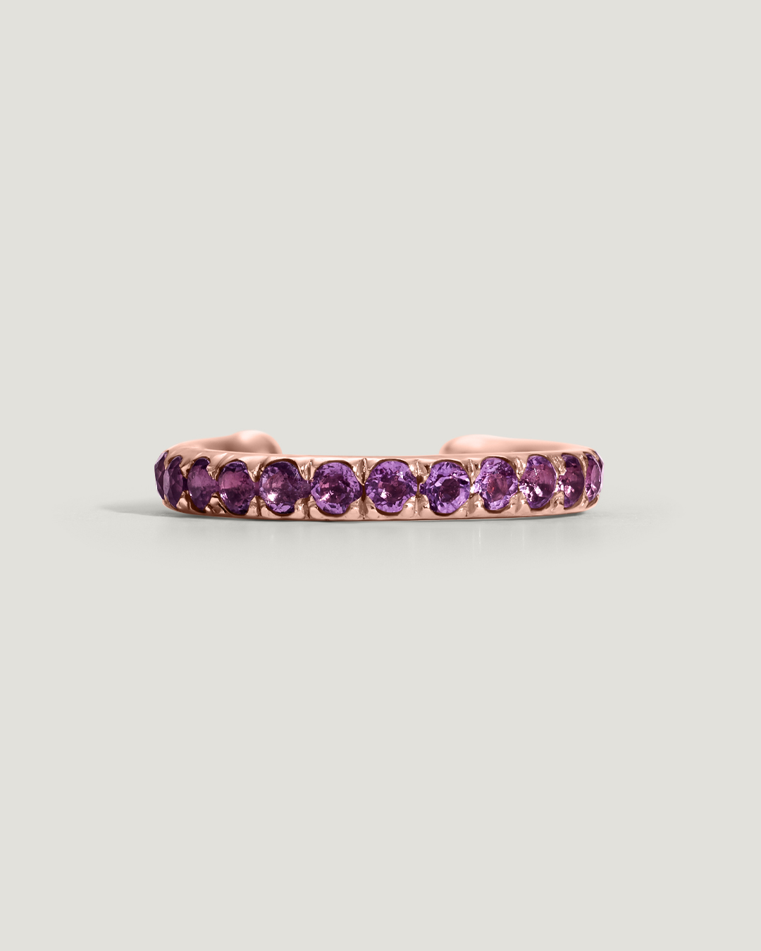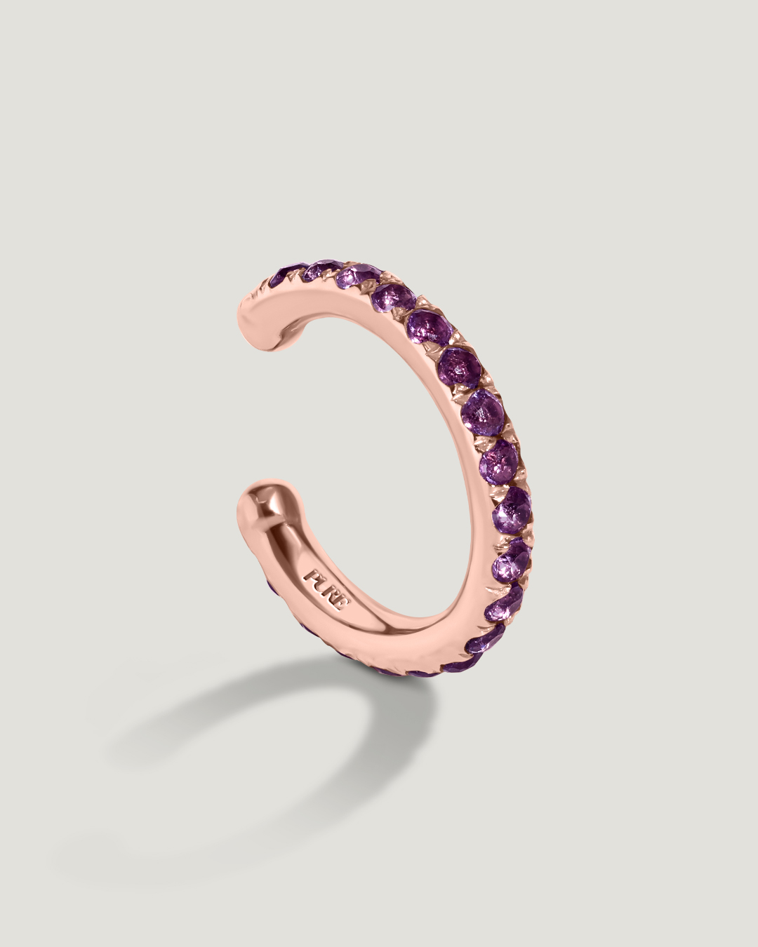 עגיל הליקס משובץ אבני חן סגולות, עיצוב שמשדר נשיות עם נגיעה שובבה. ההשראה מטורי ברץ, מעצבת שמביאה לעולם האופנה שילוב של צבעים נועזים עם אלגנטיות יומיומית. כך גם העגיל הזה, קליל, צבעוני ותמיד מחמיא