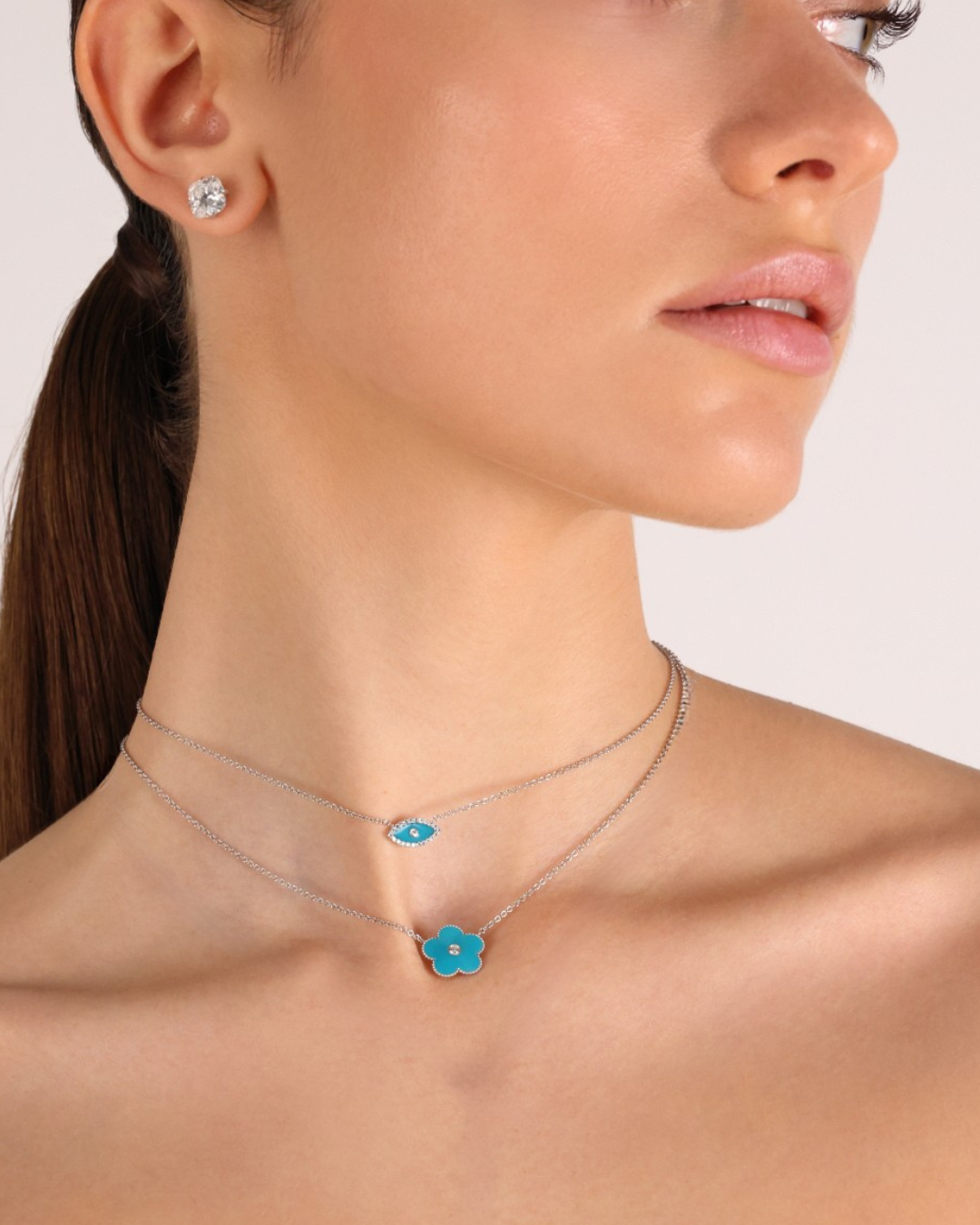 שרשרת צוקר עם עין אמייל טורקיז תכלת ויהלומים מדויקים מסביב, תכשיט שמעז להיות גם עדין וגם עוצמתי. ההשראה מטרייסי אמין, אמנית שלא מפחדת לחשוף את עצמה ולהפוך כאב ליופי. כך גם השרשרת הזו, אישית, אמיצה ומסקרנת