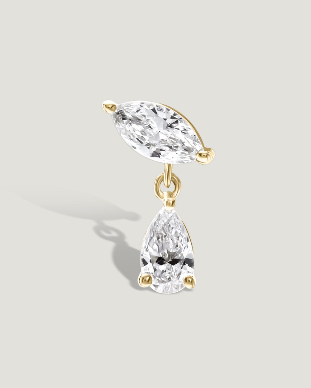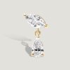 יהלום טיפה שנתלה בקלילות מיהלום מרקיזה ויוצר תנועה עדינה על האוזן. העיצוב שואב השראה מהשקט והעוצמה של ולנטינה טרשקובה במסע שלה בחלל. הכל כאן עובד על דיוק ופרופורציות, זהב עדין ונקי עם יהלום מדויק שמתאים בדיוק , ותוצאה סופר אלגנטית